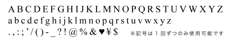 使える文字に限りがあります。フォントはTimes New Roman、文字の高さ6mmのみとなります。